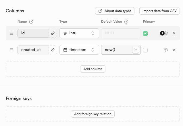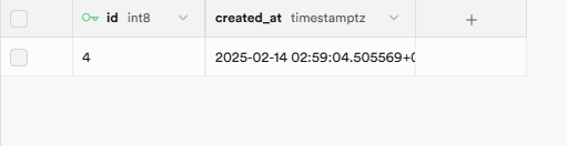 예시로 만드는 테이블이기 때문에 그냥 id랑 타임스탬프만 넣겠습니다.