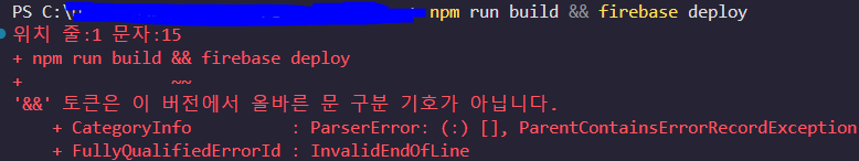 Windows Powershell은 &&를 인식하지 못하는 문제가 있다고 합니다.