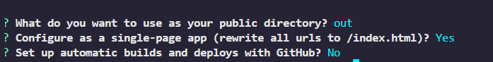 SPA를 배포할 거니까 Y, Github Actions는 이번엔 사용하지 않기 때문에 N을 선택해주면